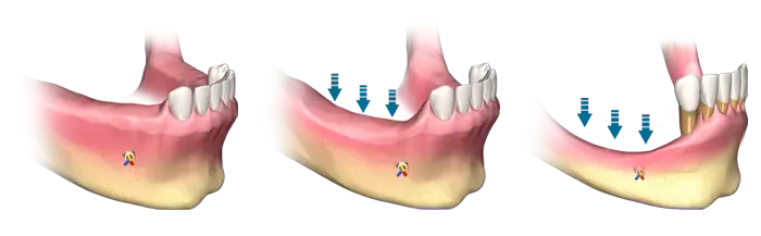 La dentiera tradizionale non ferma la perdita ossea e richiede maggiore manutenzione. La pulizia deve essere fatta tutti i giorni e non si avrà mai la stabilità di una dentiera fissa su impianti.
